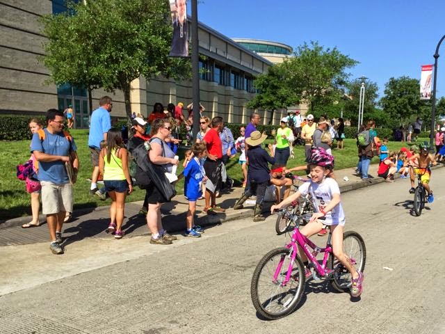 Big sister doing the bike portion of her race (love that huge smile on her face):